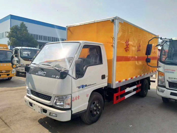 底盘选用江铃顺达危险品专用底盘,单排驾驶室,3360MM轴距,五十铃115马力发动机,带空调,方向助力,前盘后鼓刹,排气管前置,限速装置,ABS,大灯可调节,刹车臂自动调节,7.00R16钢丝胎。